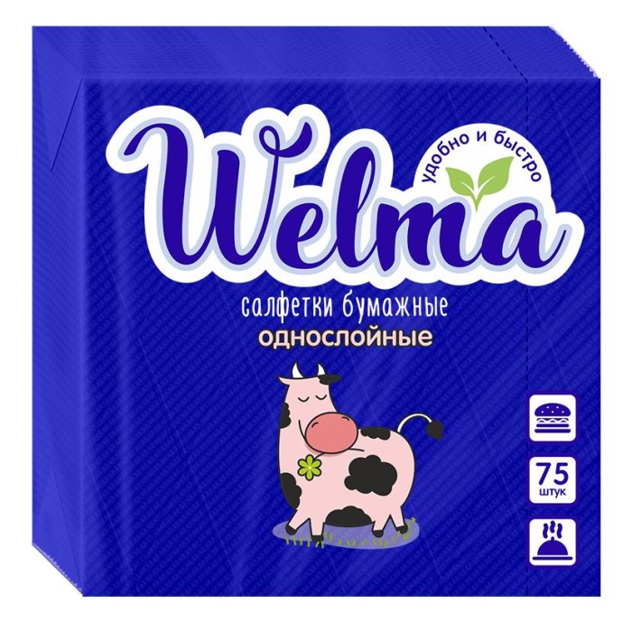 Салфетки бум. стол. 24х24см 1 слой (75л/уп) WELMA (насыщенные тона)