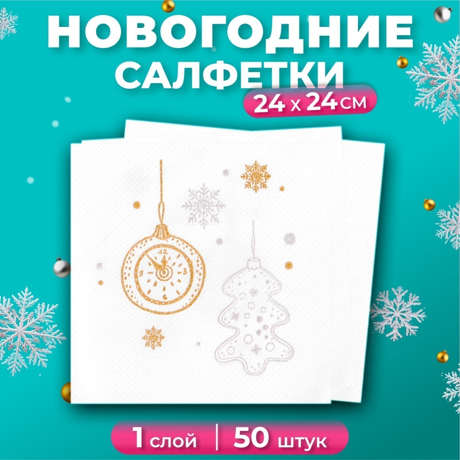 Салфетки бум. стол. 24х24см 1 слой (50л/уп) С РИСУНКОМ "НОВЫЙ ГОД"