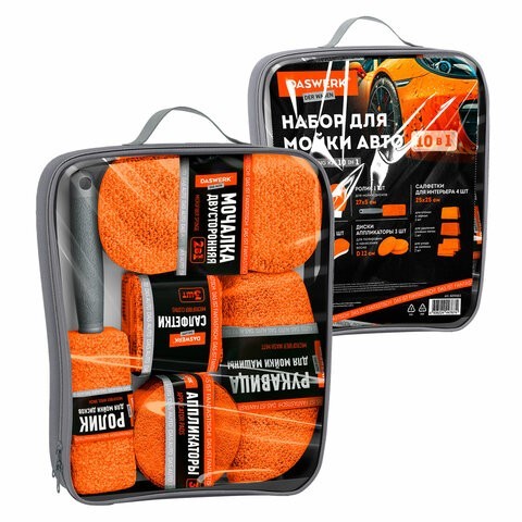 Набор для мойки авто 10-в-1, DASWERK (ДАСВЕРК), 609483 ОРАНЖЕВЫЙ, сумка в комплекте