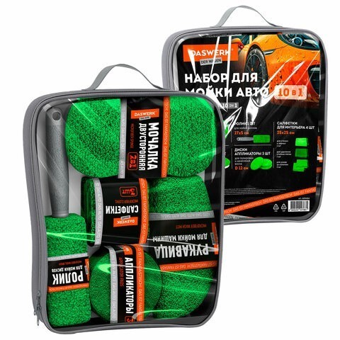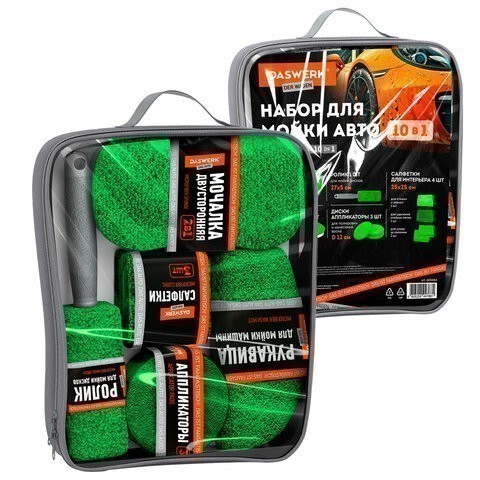 Набор для мойки авто 10-в-1, DASWERK (ДАСВЕРК), 609484 ЗЕЛЕНЫЙ, сумка в комплекте