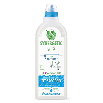 Средство чист. для труб и устранения засоров SYNERGETIC, 1л (биоразлагаемый)