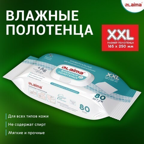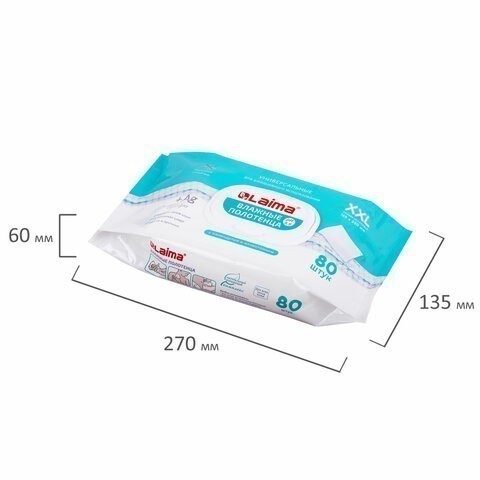 Полотенца влажные (80шт/уп) LAIMA 115222 (большие XXL 16,5х25см)
