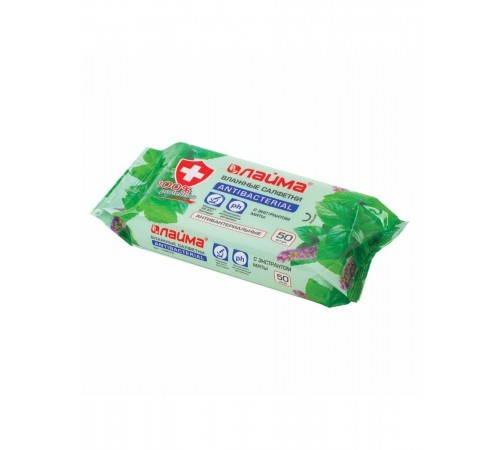 Салфетки влажные (50шт/уп) LAIMA 128078 (антибактер., с экстрактом мяты)