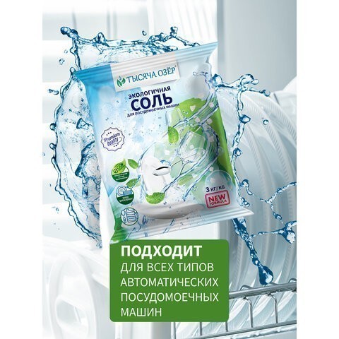 Соль для мытья посуды в пмм, 3кг ТЫСЯЧА ОЗЕР (гранулы) 608888