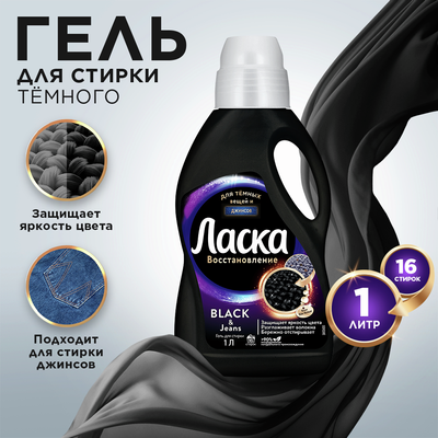 Гель для стирки ЛАСКА Сияние Черного, 1л (для темных вещей, 16 стирок)