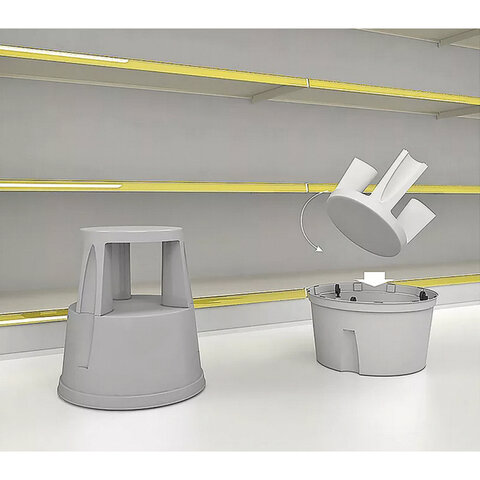 Стремянка-табурет КРУГЛАЯ, НА КОЛЕСАХ,, 2 ступени, 43см, пластик, до 150кг 602306