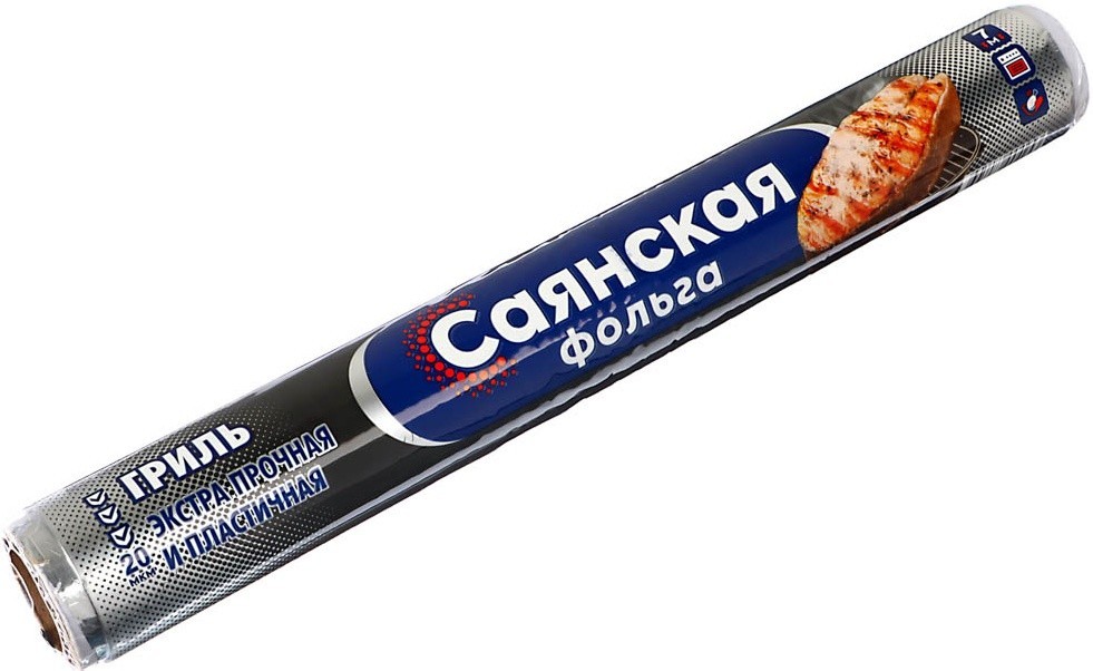 Фольга пищ. 29смх7м, 20мкм, САЯНСКАЯ ФОЛЬГА Гриль 700182 (экстра прочная)