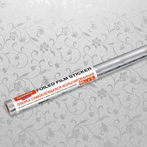 Пленка самокл., алюм. фольга защитная для кухни/дома, 0,6х3м, DASWERK (ДАСВЕРК) 607849 СЕРЕБРО ЦВЕТЫ