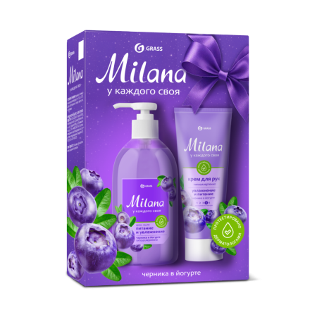Набор подар. ЧЕРНИКА В ЙОГУРТЕ, Milana (жидкое мыло 300мл + крем для рук 80мл) GRASS 300576